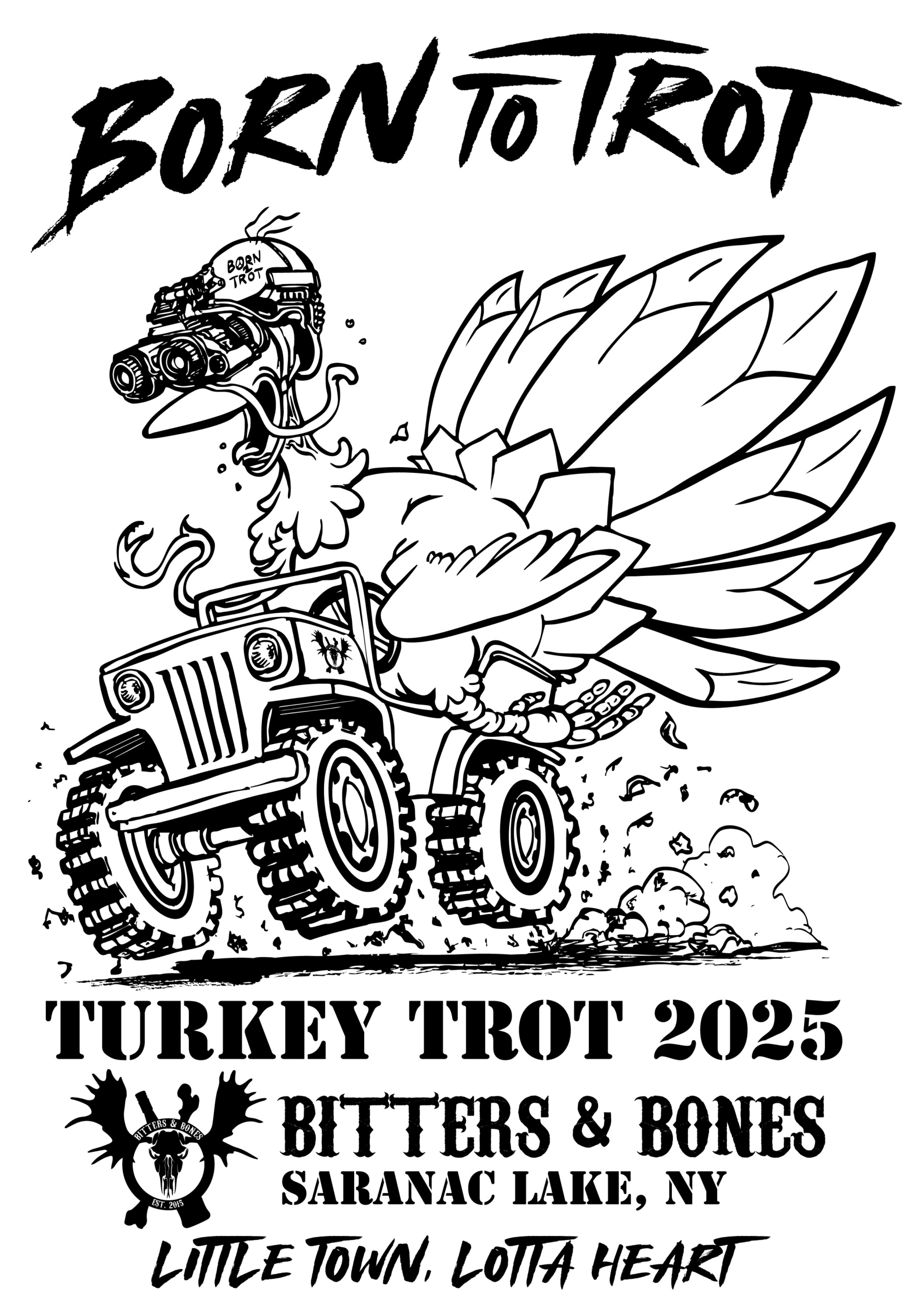 The 2025 Bitters & Bones Turkey Trot is ready to run!!! Join in the fun and dive deep to help us support two of our favorite local causes: the Saranac Lake Interfaith Food Pantry and the Saranac Lake Student Needs Fund. Great causes. Great prizes. Great Community. It doesn't get better than that!